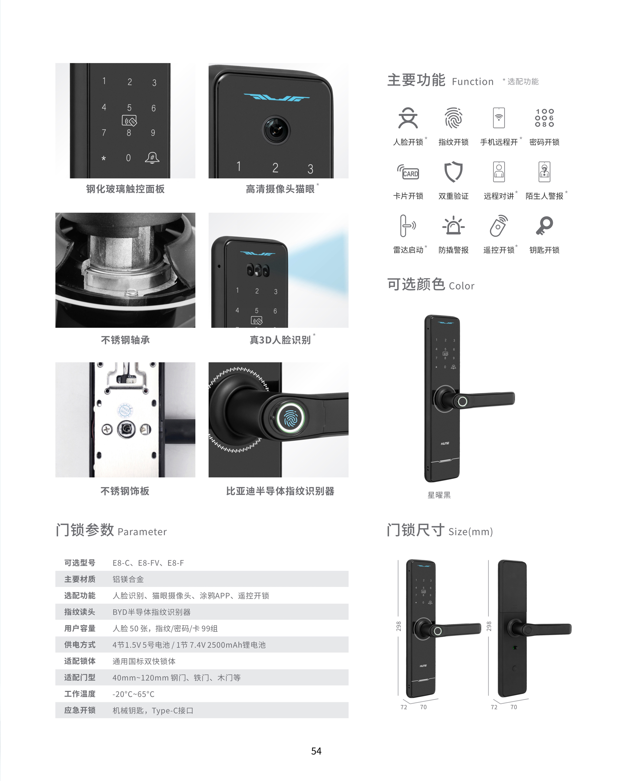 选配功能:人脸识别、猫眼摄像头、涂鸦APP、遥控开锁