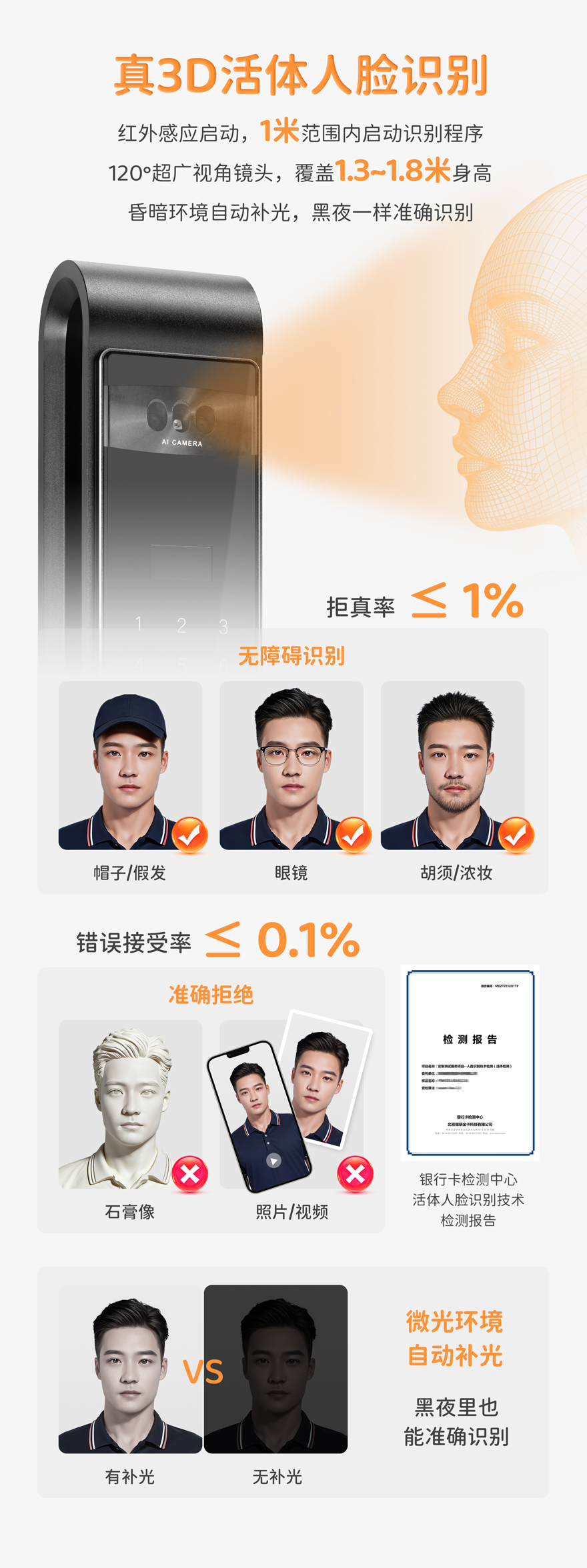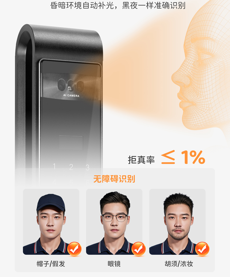 用户容量:人脸99张,指纹/密码/卡99组