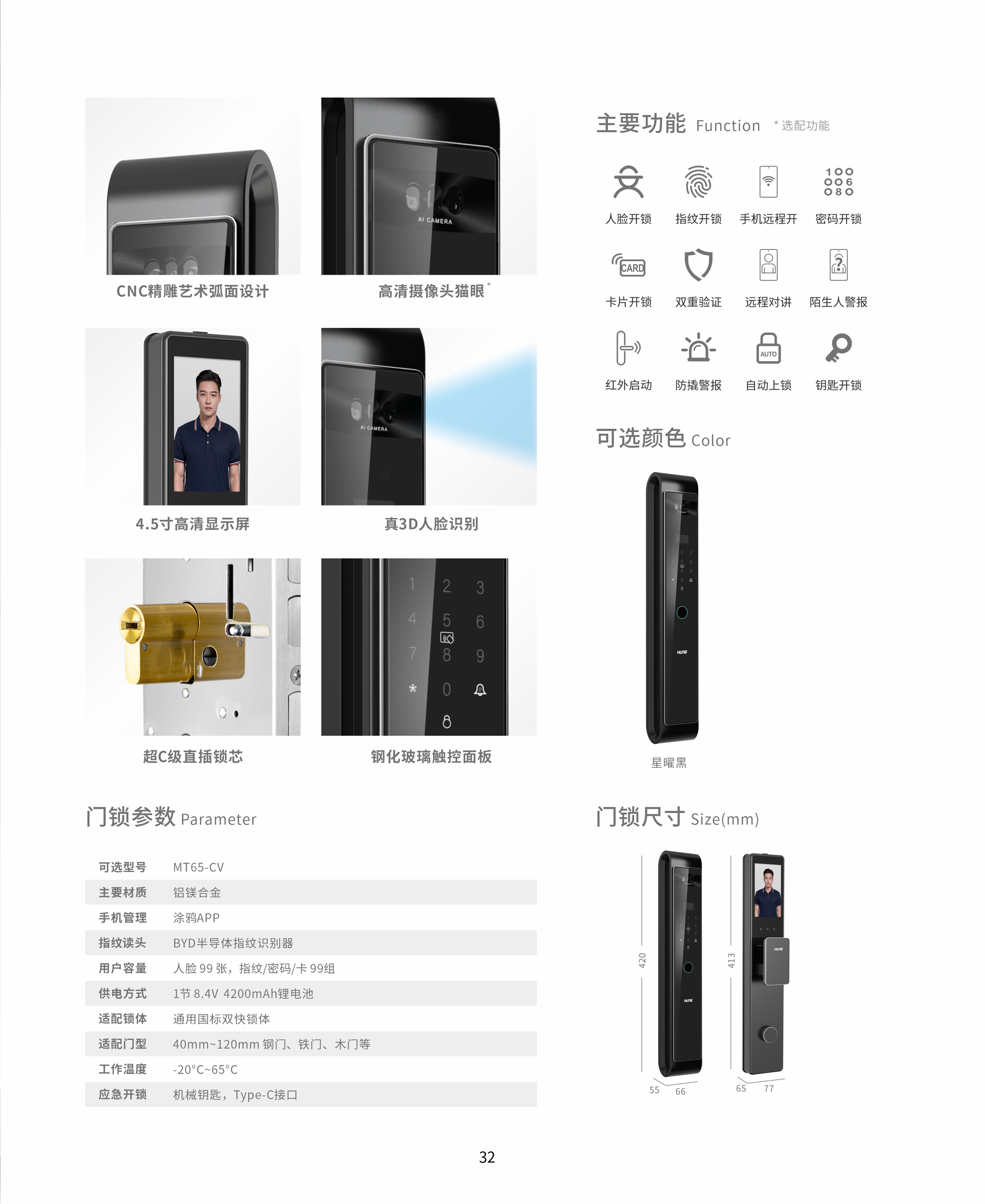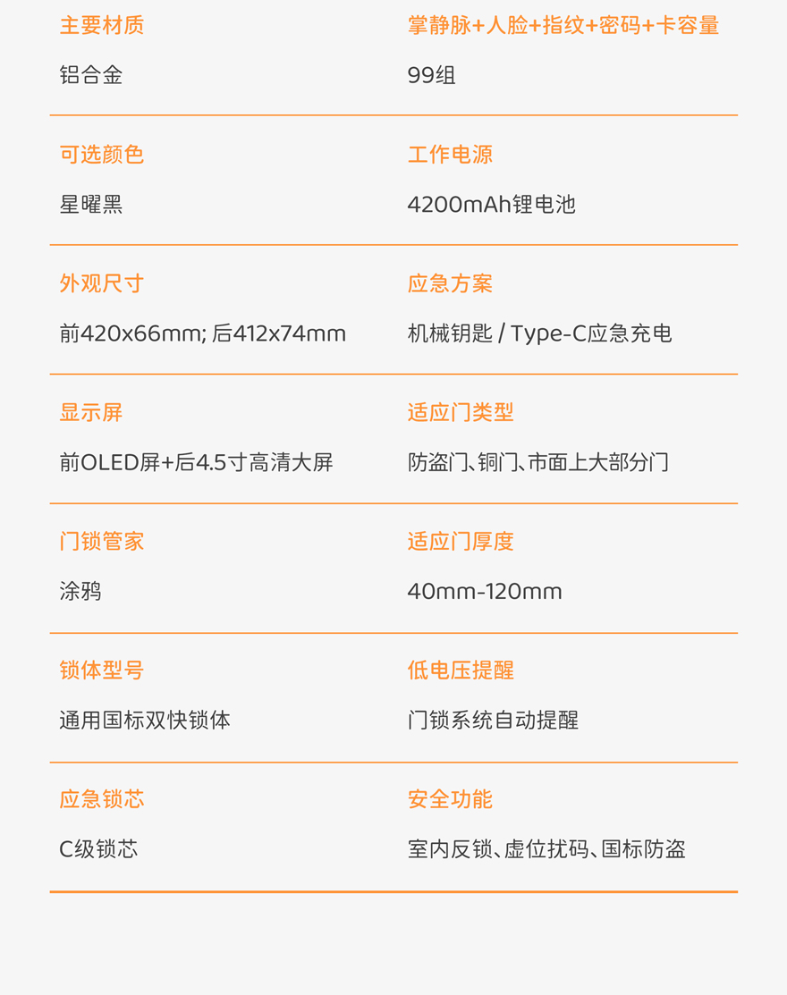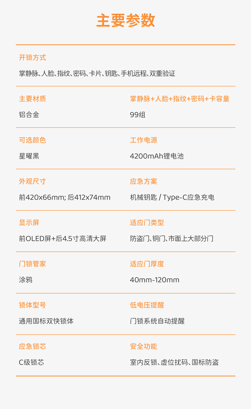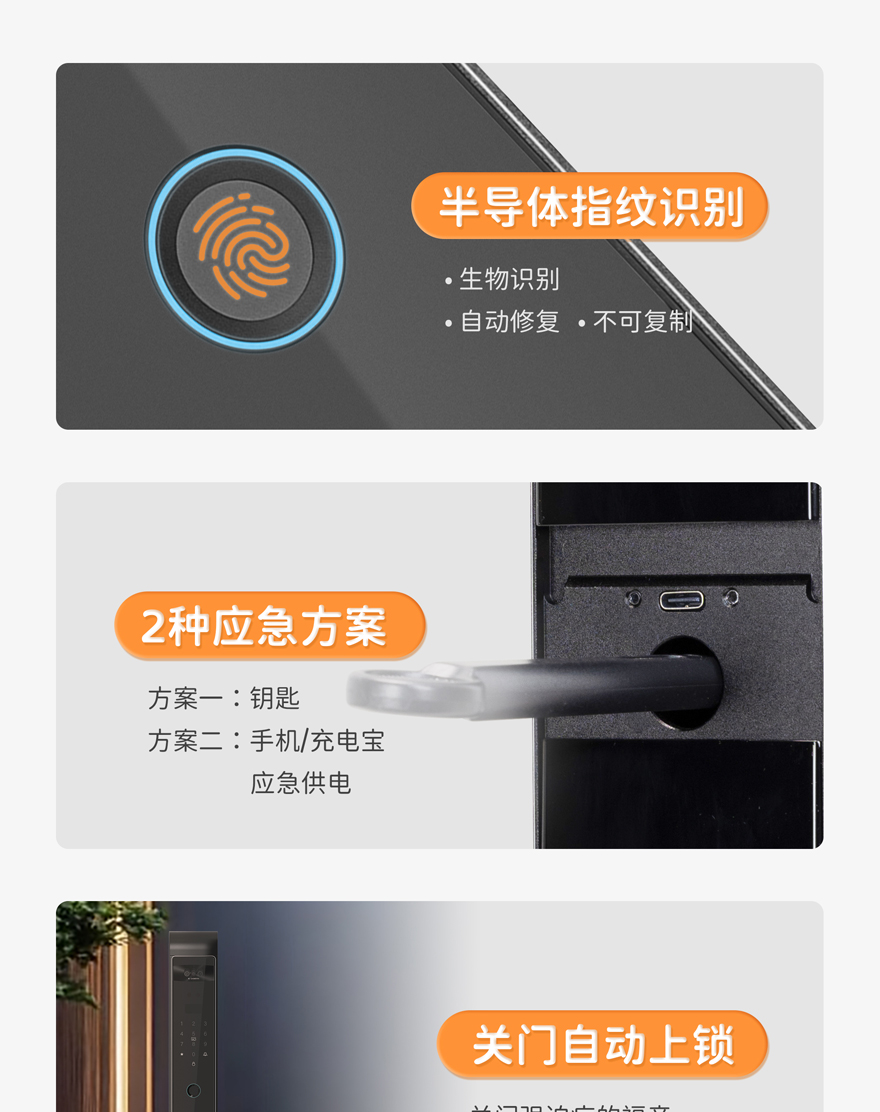 应急开锁:机械钥匙,Type-C接口